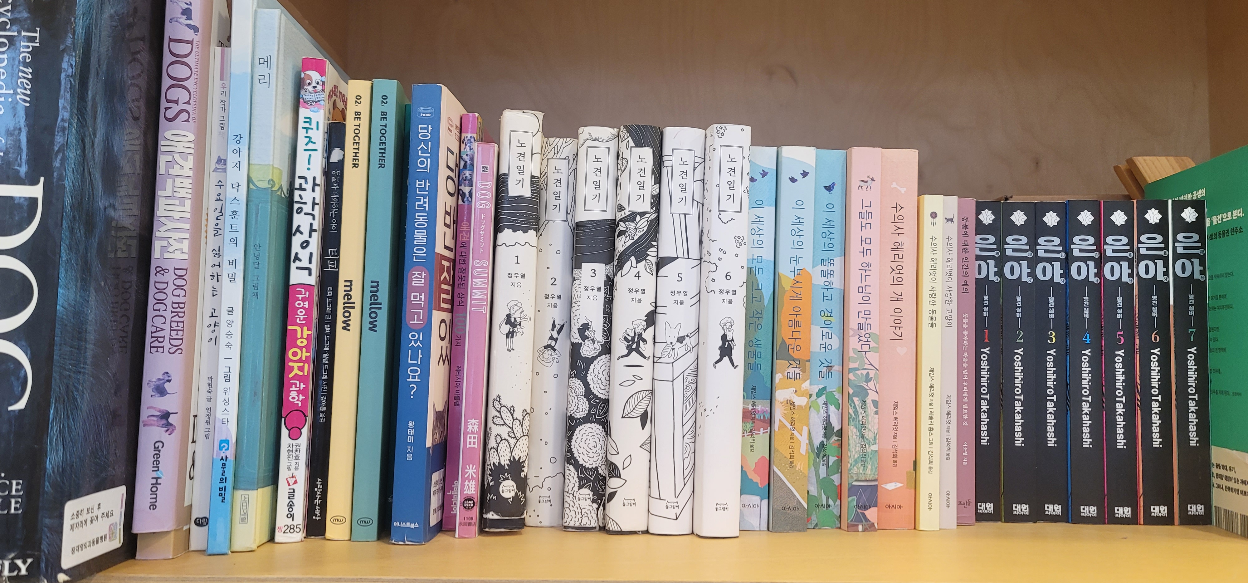 대기하는 보호자들을 위해서 준비해 놓으신 책들, 한 달 전만 해도 총 두 칸이 책이었는데 한 칸이 줄었다. 첫날 5시에 방문했는데 1시간 기다리면서 병원에 비치된 '노견일기'를 읽었다. (테리어를 데리고 제주도에서 사시는 작가님이 그리신 책이다. )