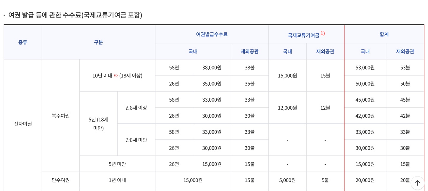 원하는 여권의 종류에 따라 가격이 달라집니다. (ex 전자여권, 복수여권 기준 8세 이상 26면의 경우) 저는 우편으로 여권을 받겠다고 신청하고 배송료 5500원까지 결제하였습니다.