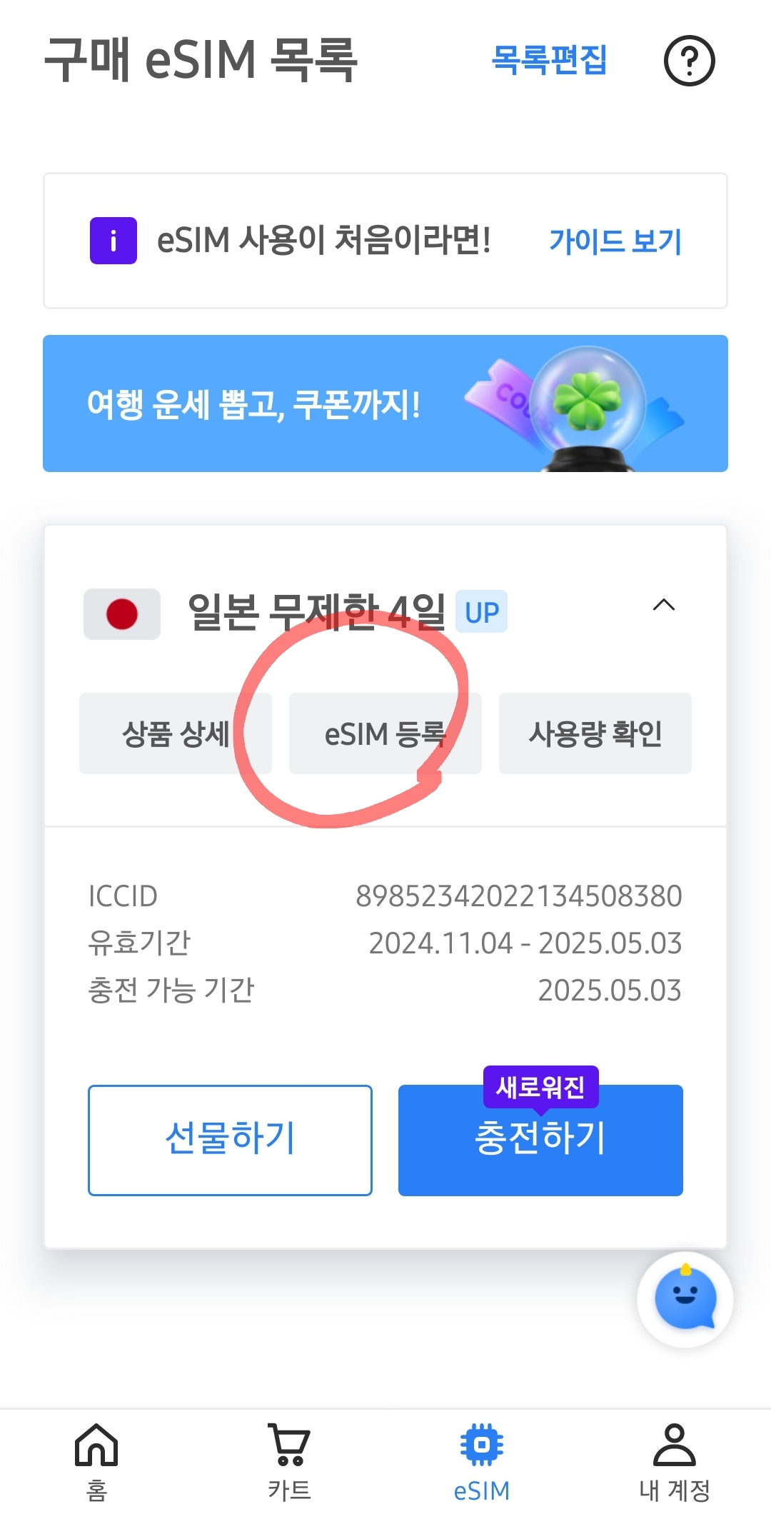 eSIM 연결 확인 끝!