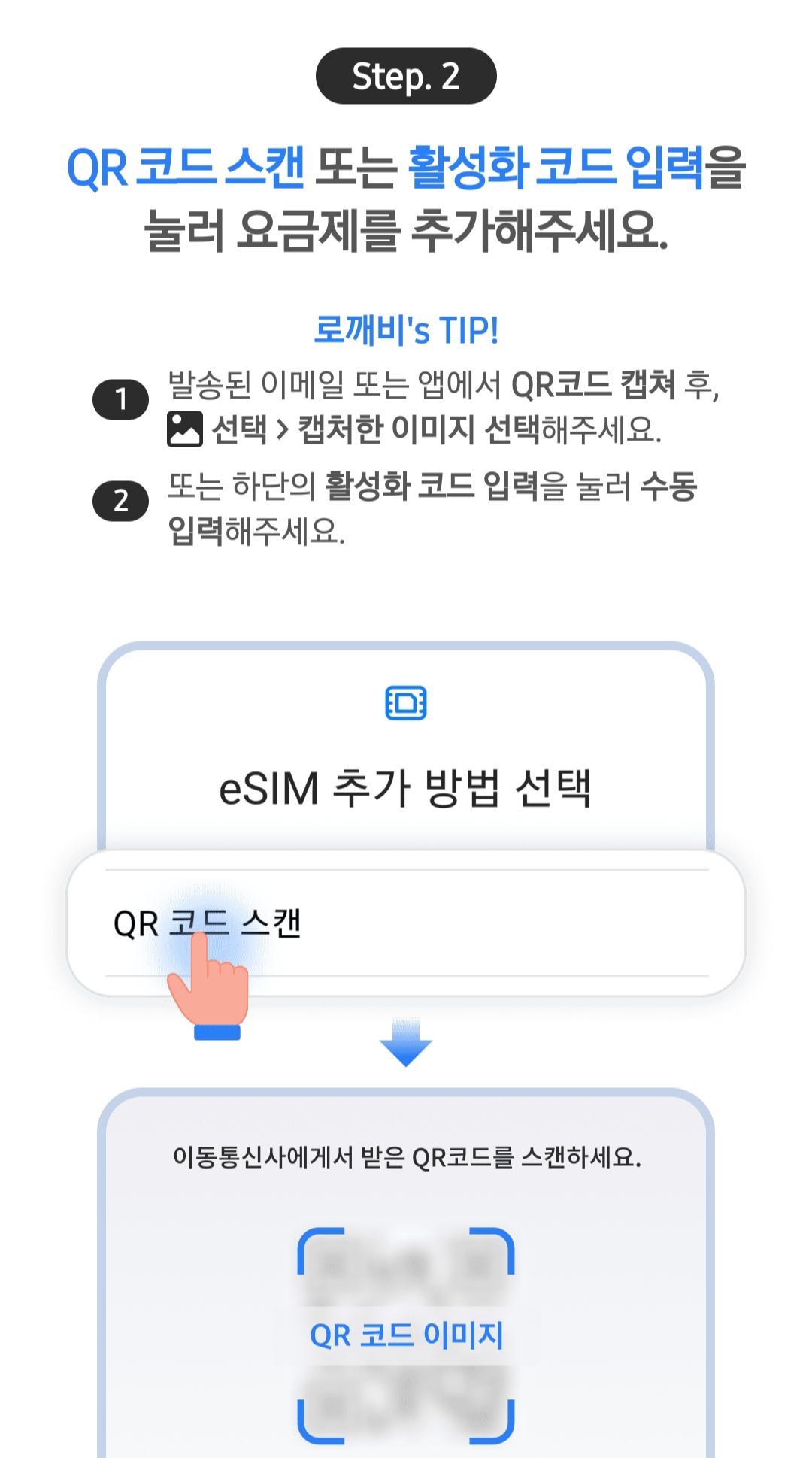 아래 eSIM 등록 누르시면 거기 QR코드가 있습니다.